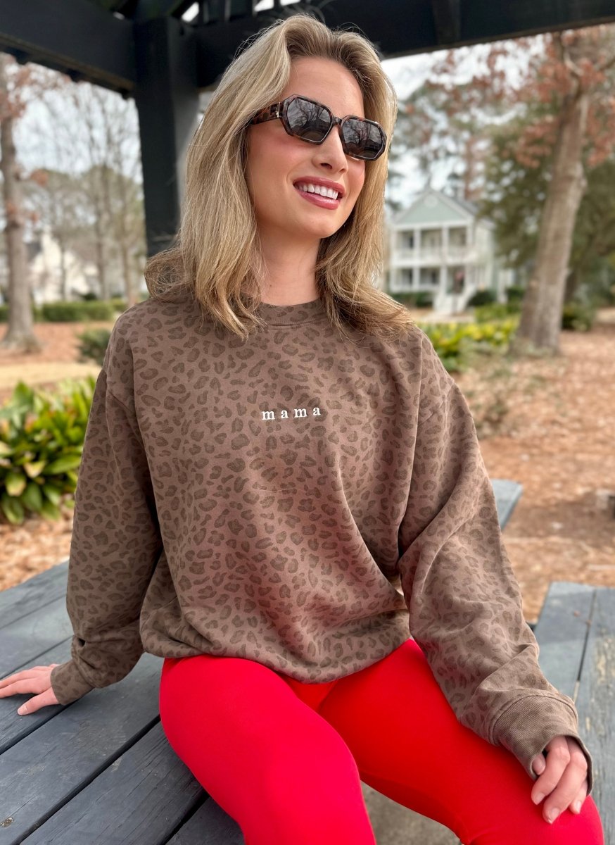Embroidered ‘Mama’ Vintage Leopard Crew
