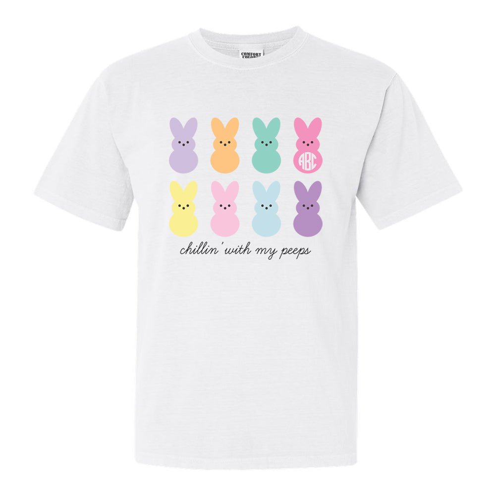 Put the "spring" in your step with this trendy Easter Peeps Comfort Colors shirt! Choose to have your shirt monogrammed with your initials, or to keep it classic with no monogram. Chill out and relax with your peeps in style this easter season :)