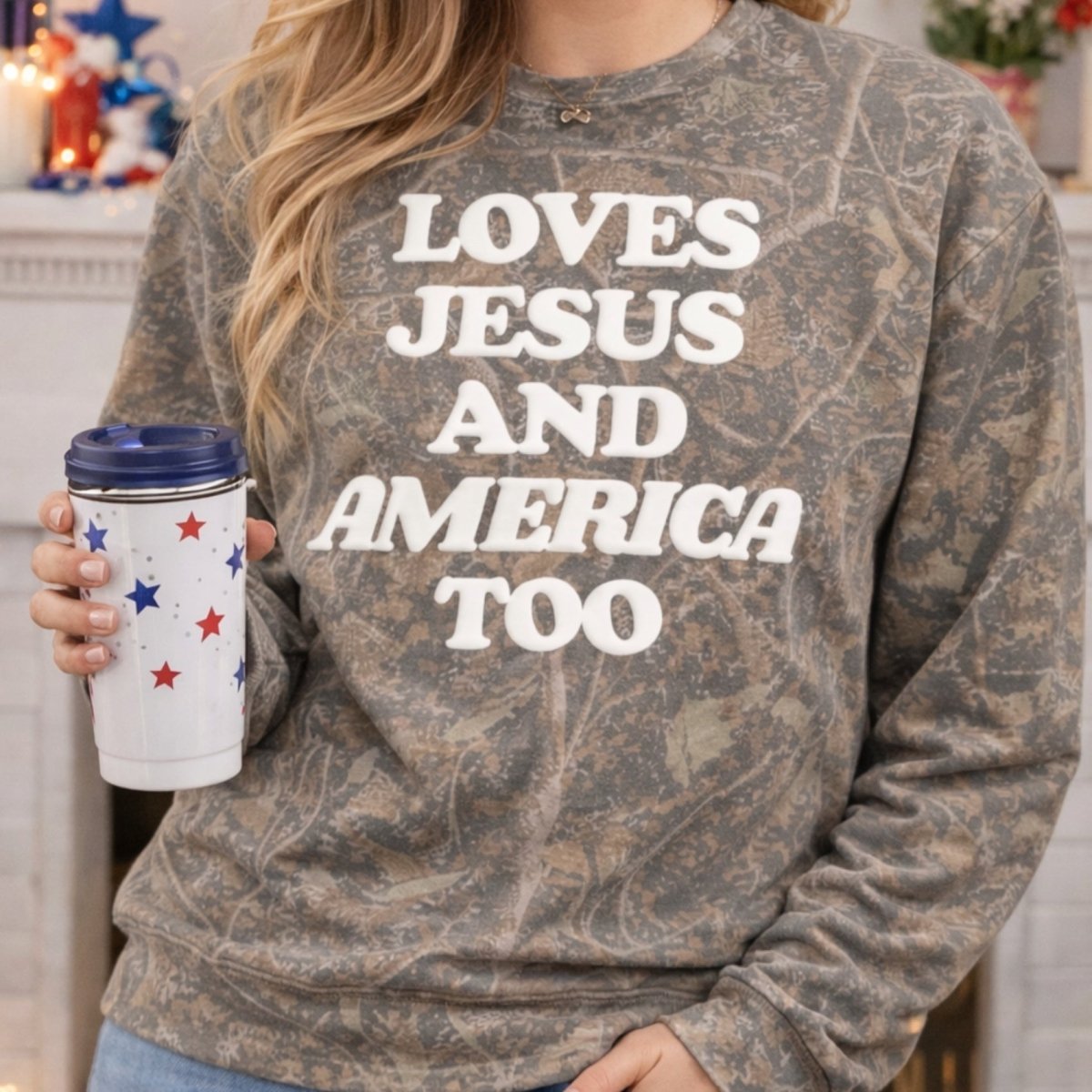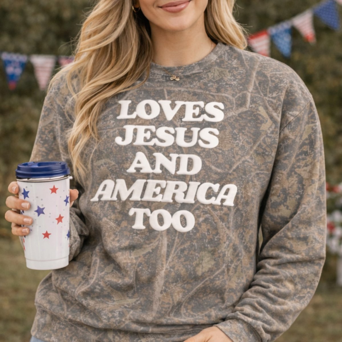 This is the kind of sweatshirt that gets compliments at the coffee shop — and feels just as good on the couch. Faith, freedom, and fall energy wrapped into one go-to crew.