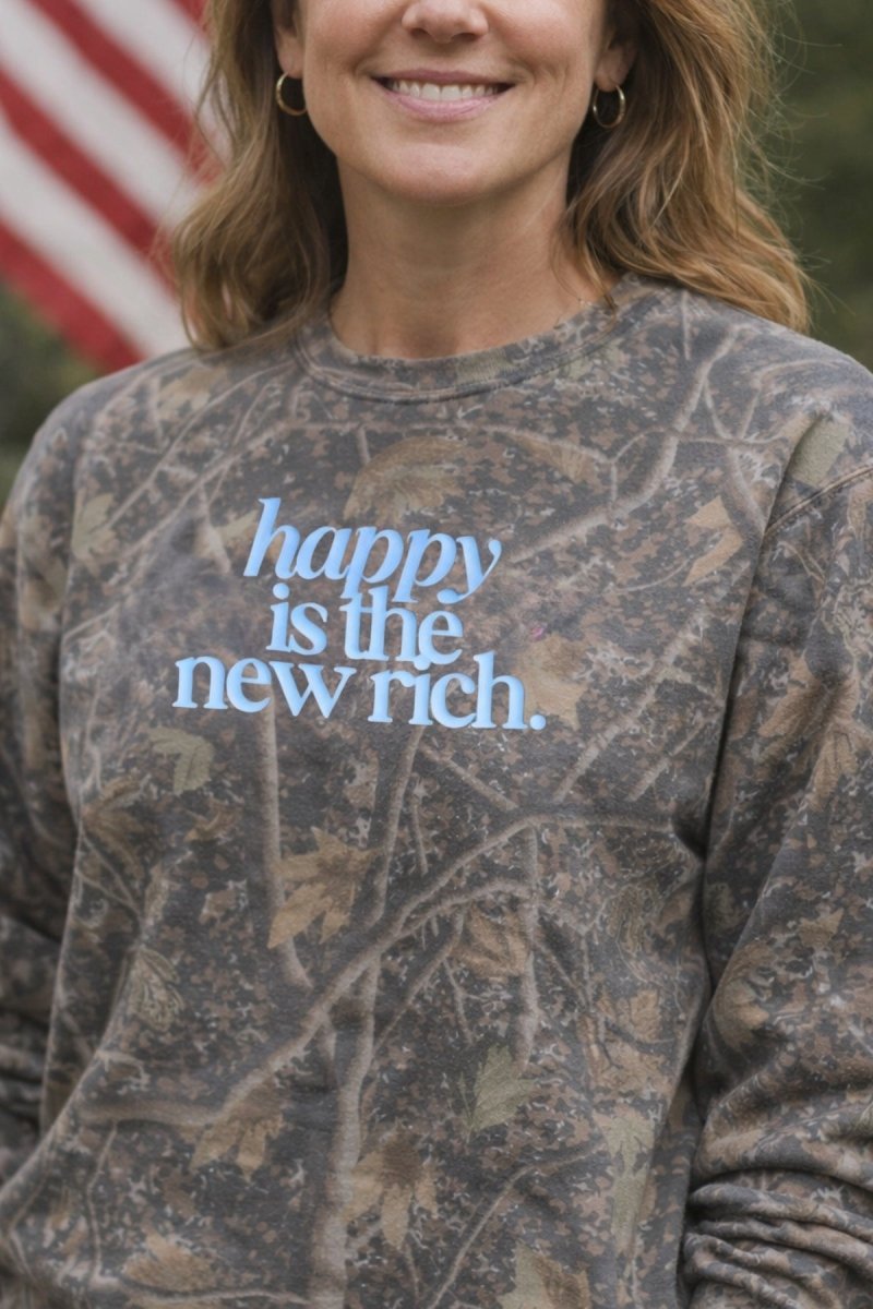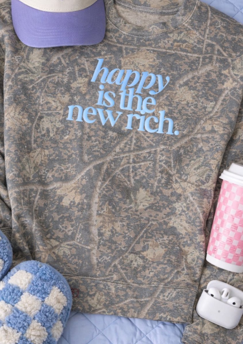 PUFF 'Happy is the New Rich' Camo Hideaway Crewneck