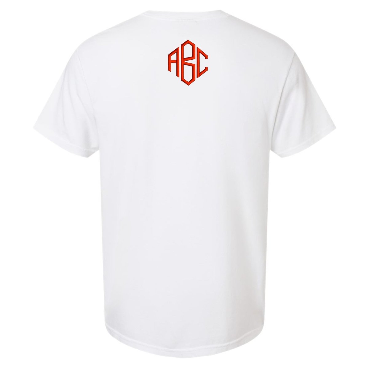 Choose your monogram style, thread color, and placement to create a shirt that feels uniquely yours. The Signature Detail: Back Neckline Monogram- Our Back Neckline Monogram is placed just below the collar on the upper back, it creates a subtle, elevated look that feels both stylish and unexpected.