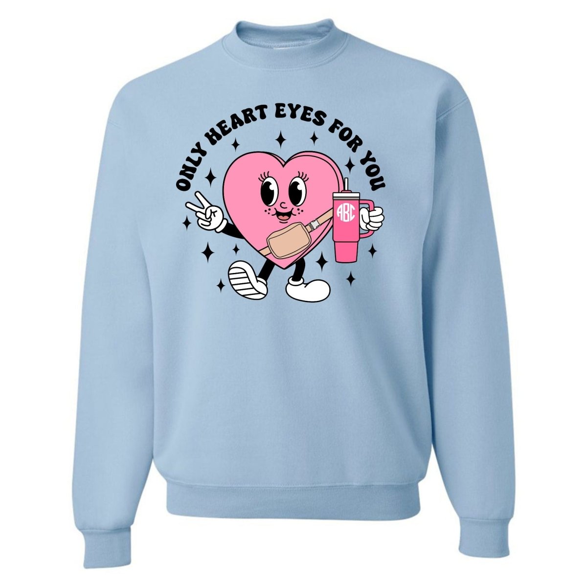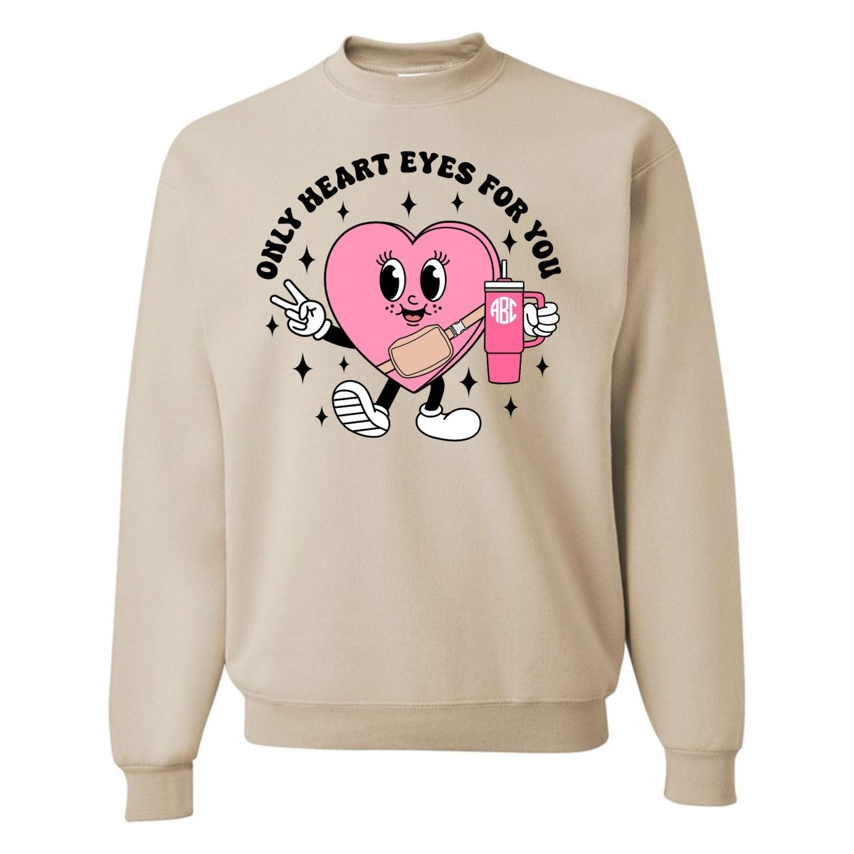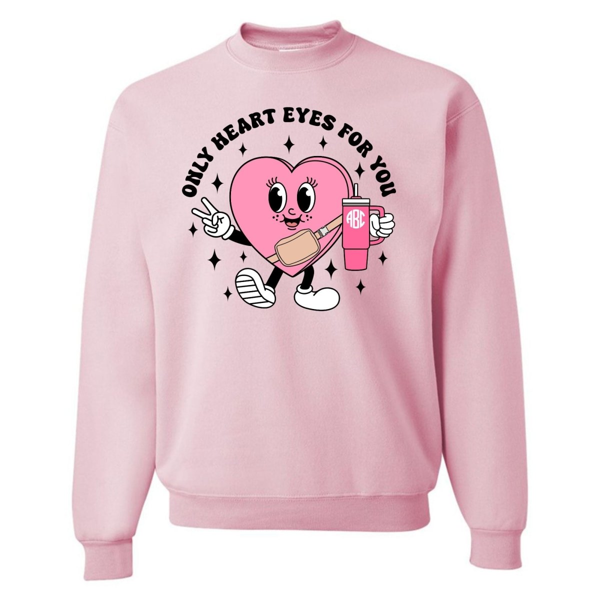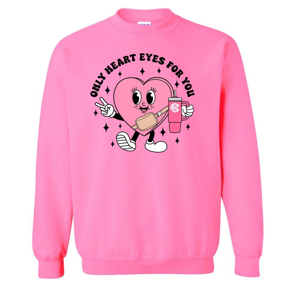 Express your love with the Monogrammed 'Only Heart Eyes For You' Sweatshirt. Personalized with your monogram and a message of devotion, this cozy crewneck is perfect for showing your affection.