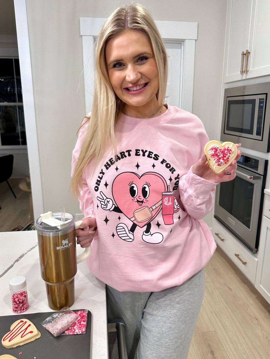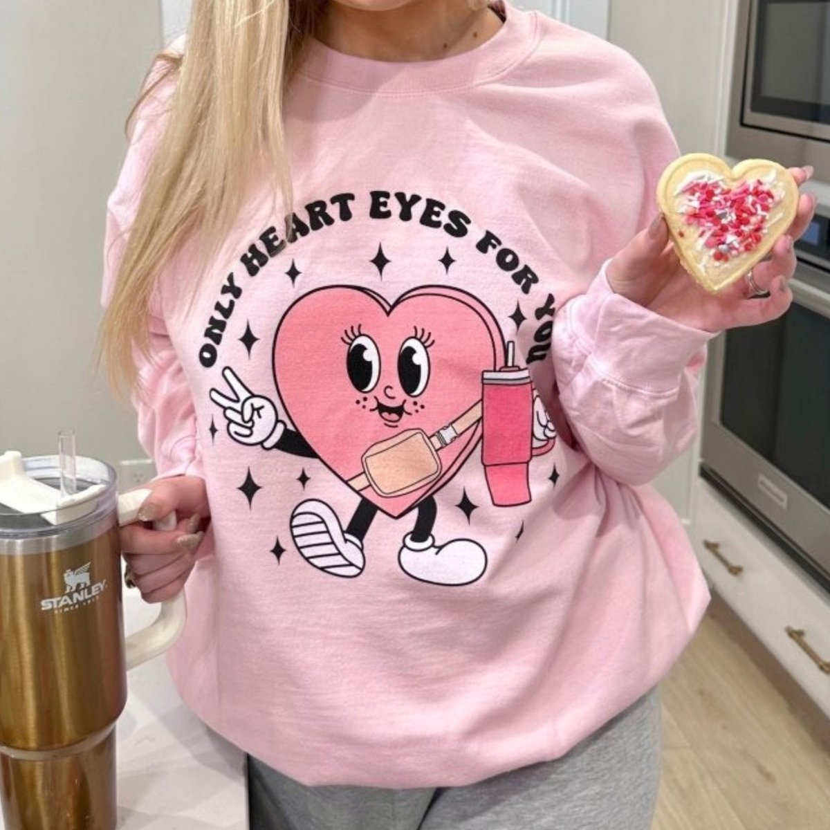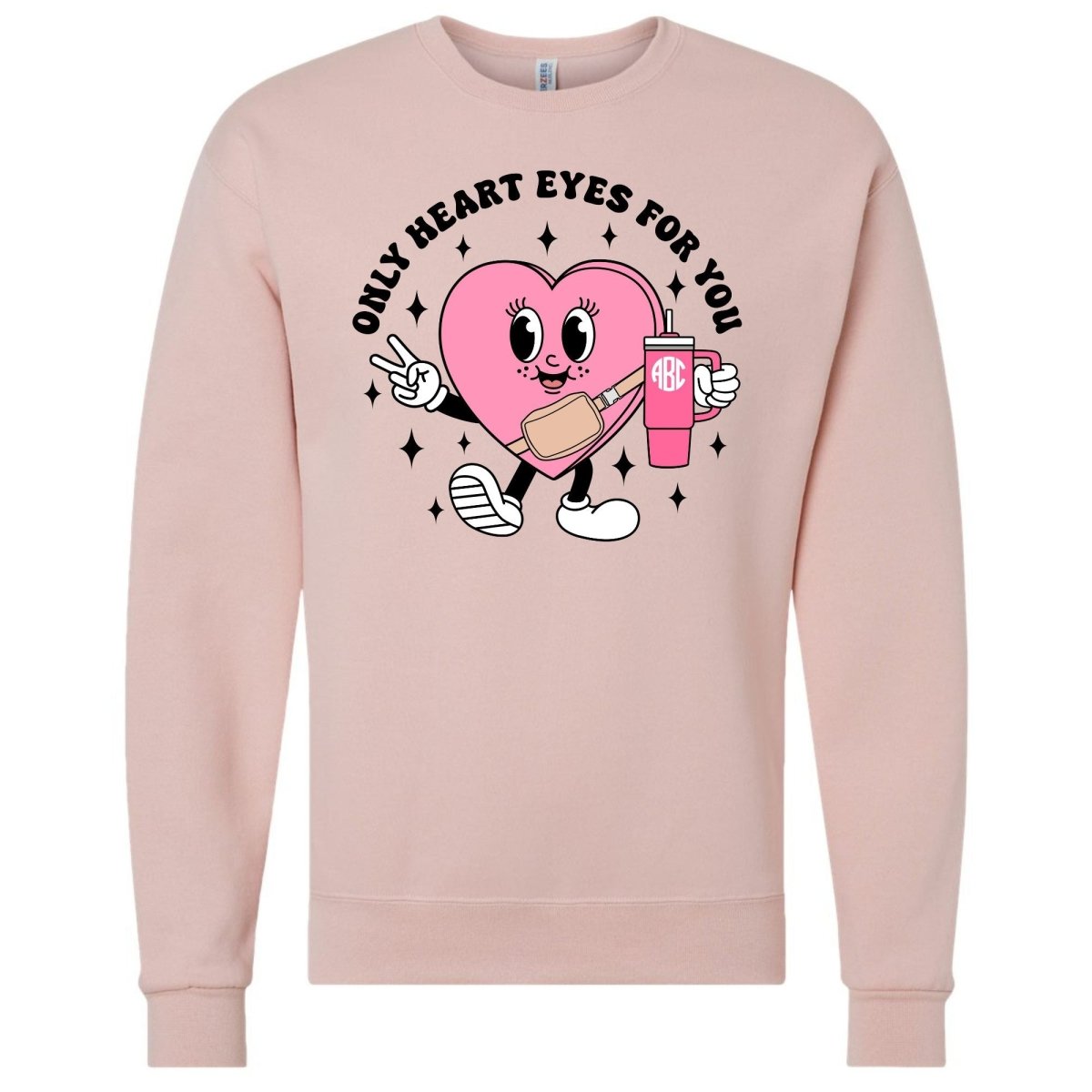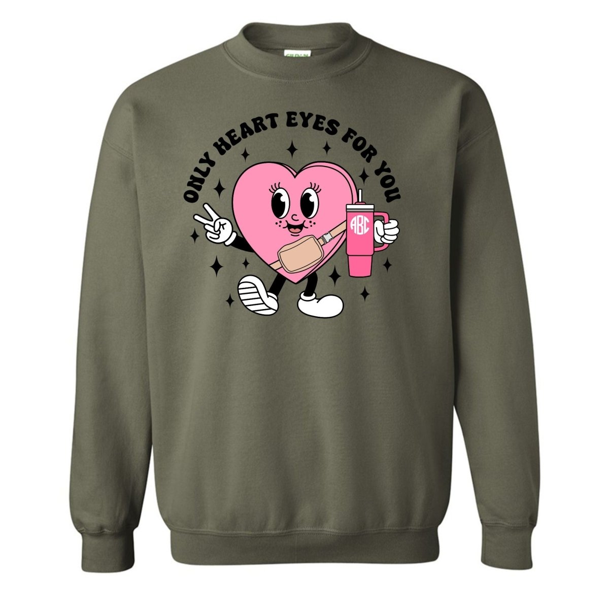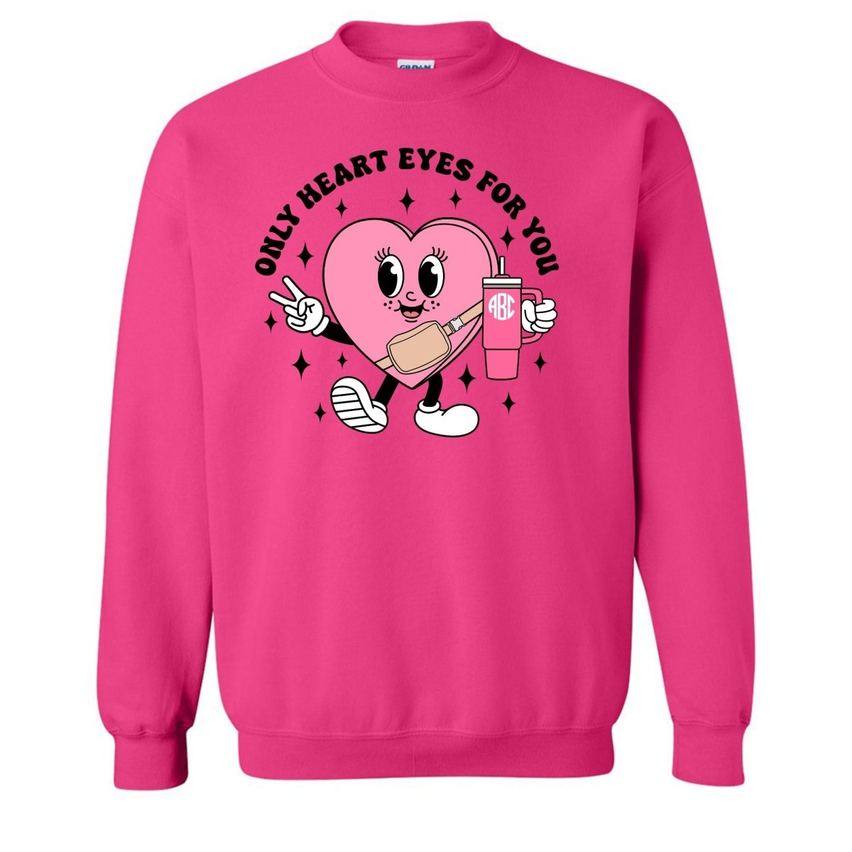 Express your love with the Monogrammed 'Only Heart Eyes For You' Sweatshirt. Personalized with your monogram and a message of devotion, this cozy crewneck is perfect for showing your affection.
