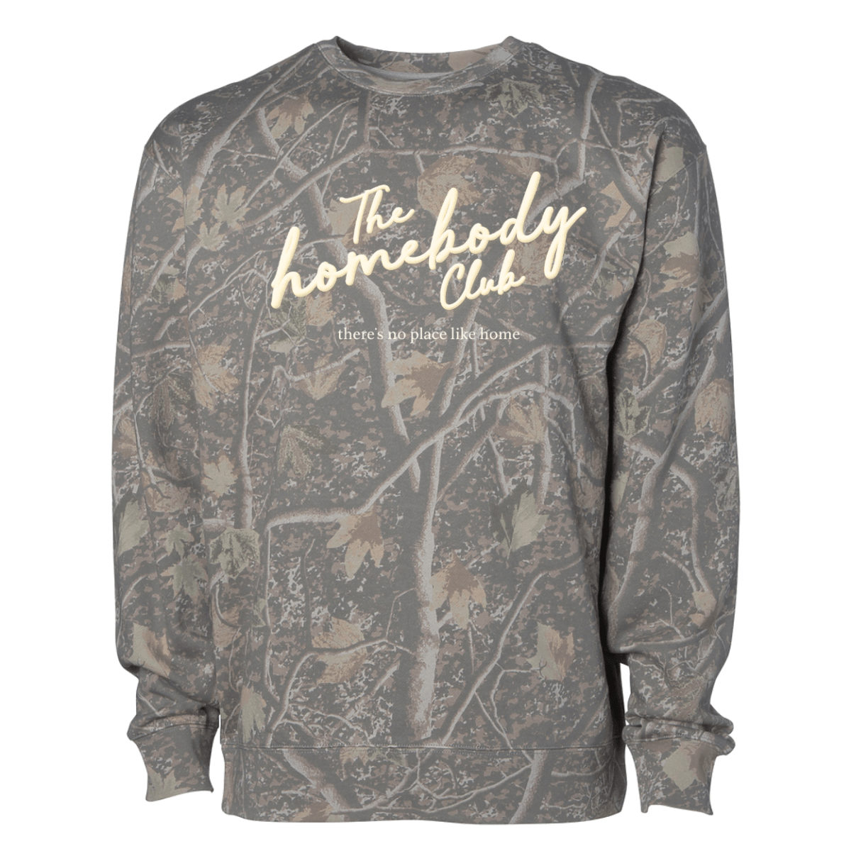Our PUFF “Homebody” Camo Hideaway Crewneck is the ultimate cozy statement, designed for laid-back days, slow mornings, and living your best at-home life.