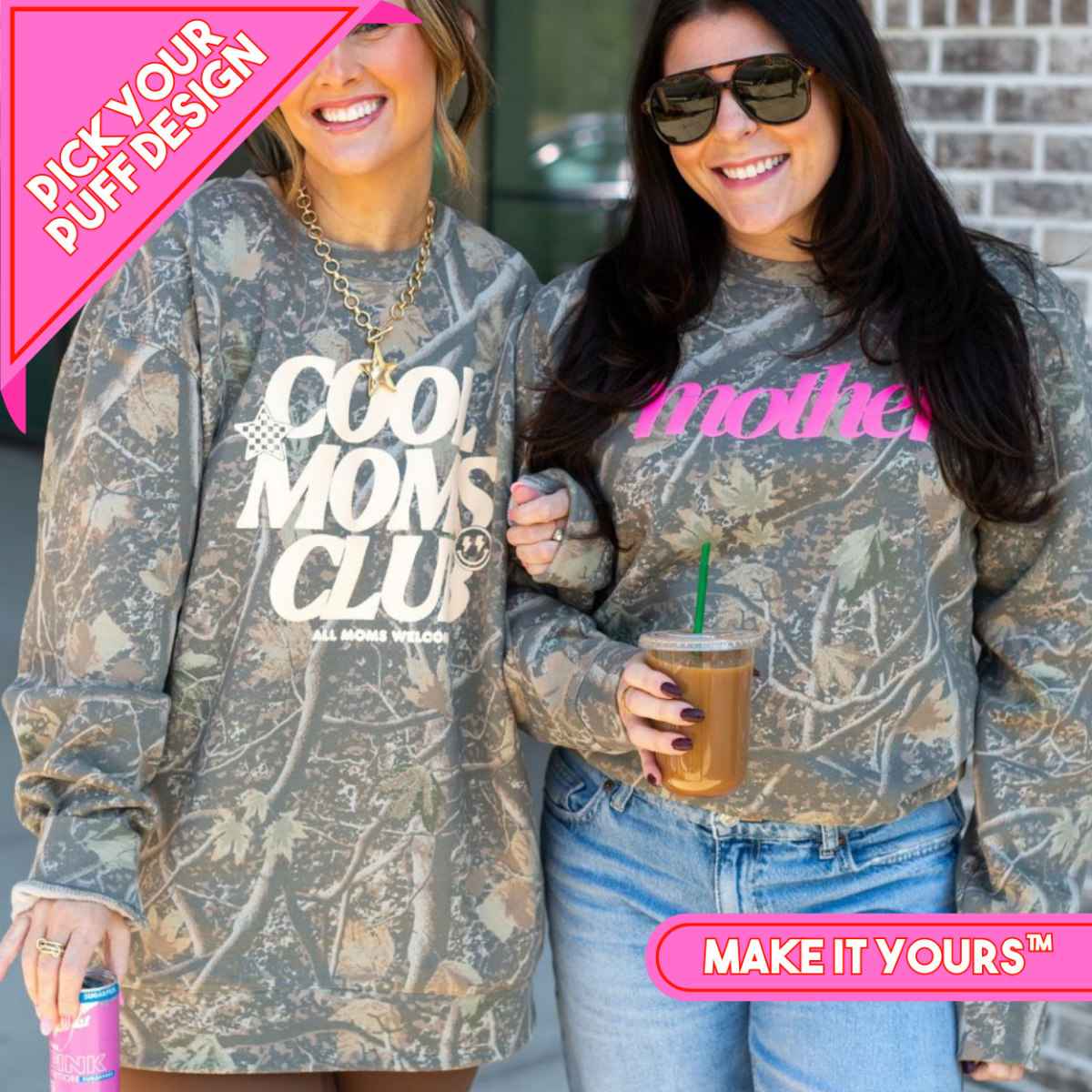 Our PUFF “Mom Life” Camo Hideaway Crewneck is where cozy meets statement. Made on our new Hideaway Camo Crew, this heavyweight sweatshirt features bold puff designs that celebrate every season of mom life—because being a mom is the main character energy.
