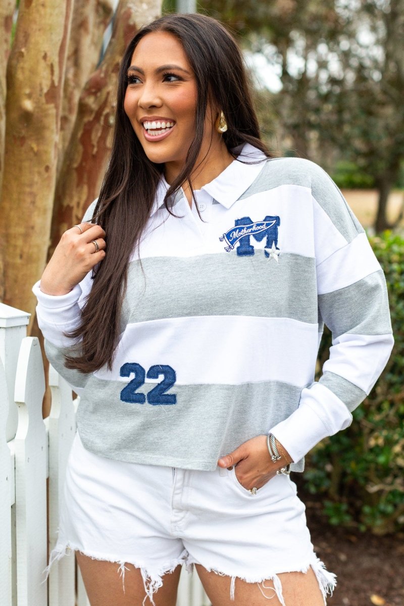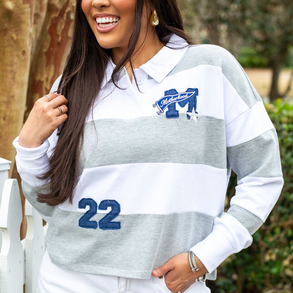 With bold heritage stripes, a structured woven collar, and a modern boxy body silhouette, this polo delivers timeless East Coast prep energy - elevated for motherhood.